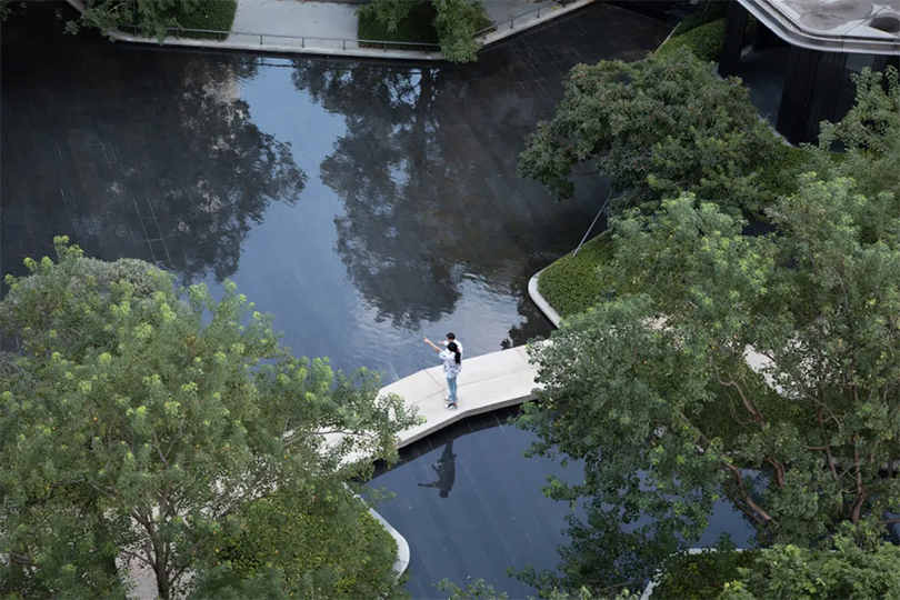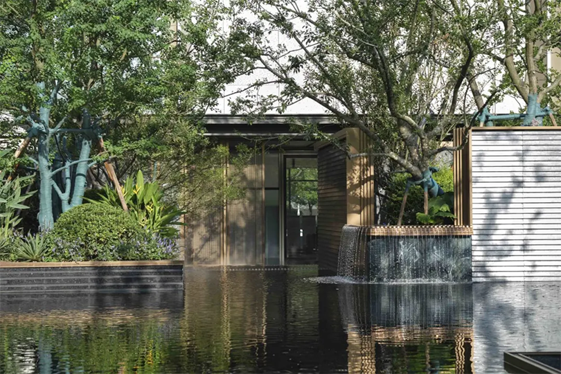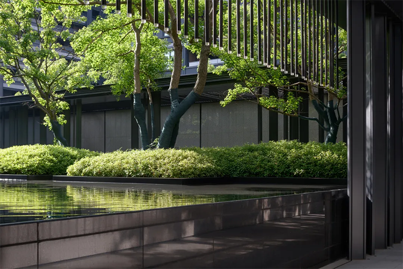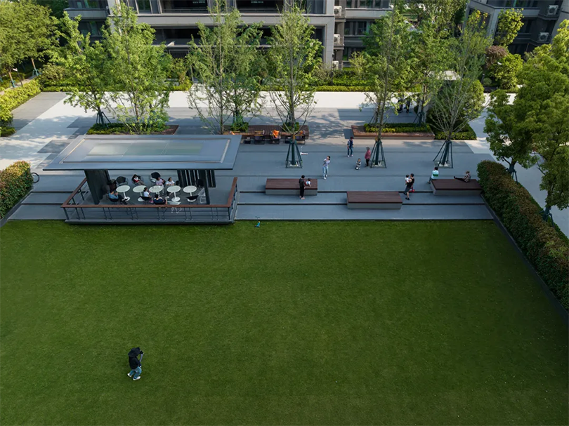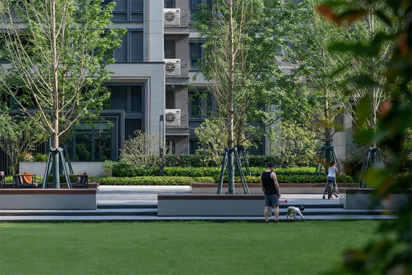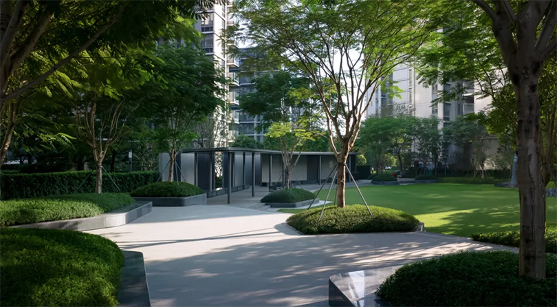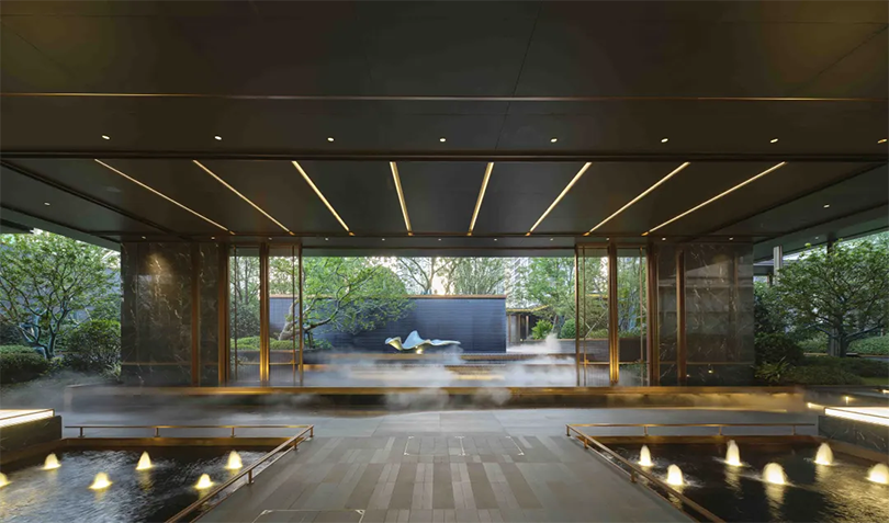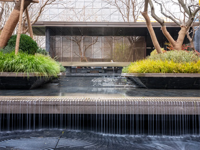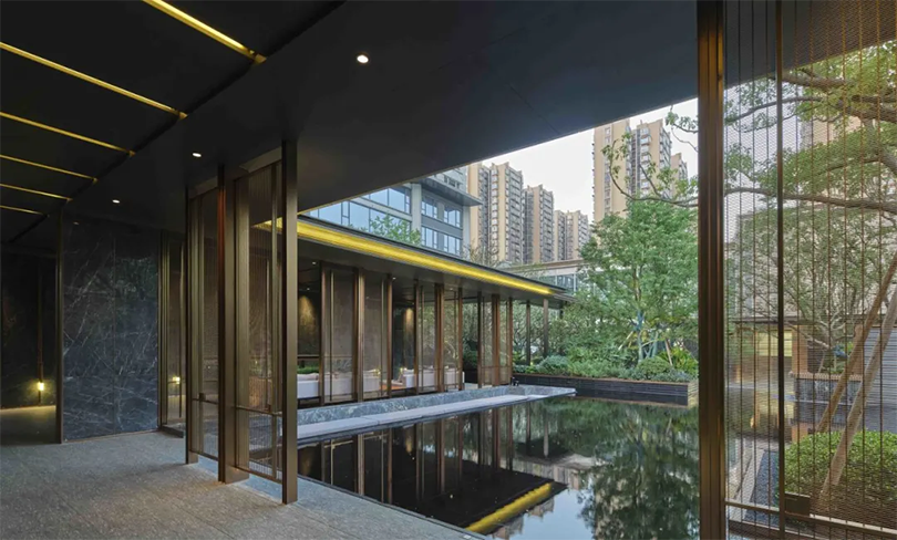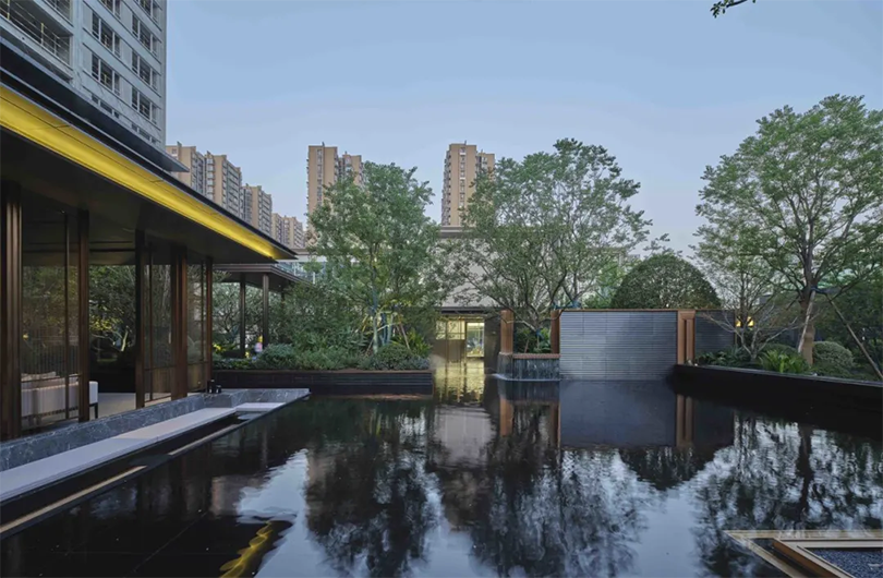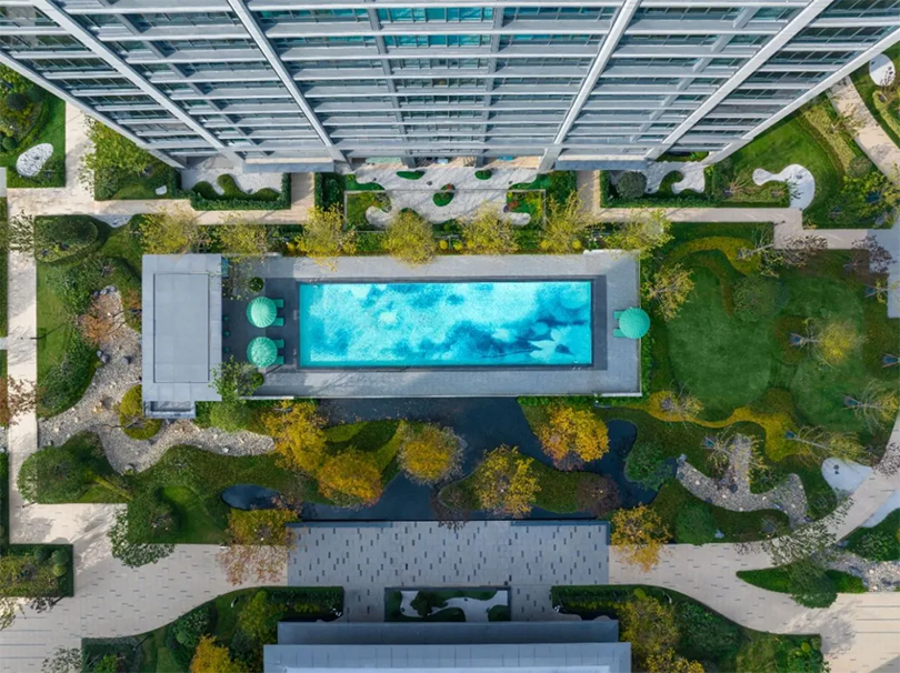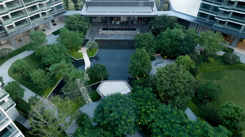 西安,是历史与时尚,繁华交织的城市。我们试图在这座鼎沸城央中打造一处奢华秘境,让自然可以缩减到适宜人体的尺度。在空间上,我们借鉴苏州园林的造景手法,将雲蘭设计成了两个套院,通过廊架串联。每个院子里面的景相互借景形成合力,塑造出悠然、安静的生活环境。同时充分考虑人对场景使用的需求,把精致软装搬到室外,花镜组团,泉水潺潺,营造出酒店般的静谧感和沙龙感。