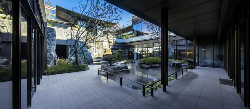 石家庄绿城·锦庐生活美学馆融合了中国北方园林的府门气派和江南园林的诗情画意,以宋代美学为本,呈现出典雅秀丽的东方气韵。掇山运石,理水叠瀑,形成可观、可行、可游、可居的山水园居生活,让人在日常生活中感受到自然的隐逸优雅、沁染东方美学。