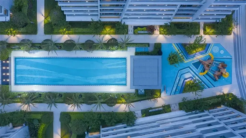 月映咏荷园通过南北一体化设计形成了整体化的形象界面,对称的林荫树阵与大型艺术装置“新月”,在建筑背景之下,彰显出现代结构秩序之美。整体设计以归家、交流、成长、康养和运动五大模块为核心,营造全方位生活体验,打造舒适、健康、活力的生活空间。