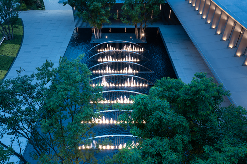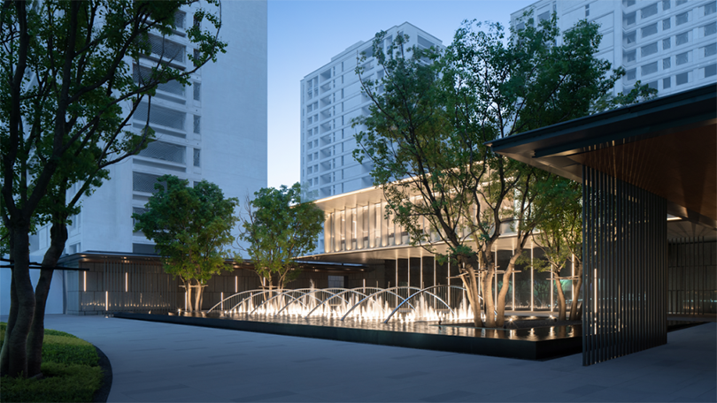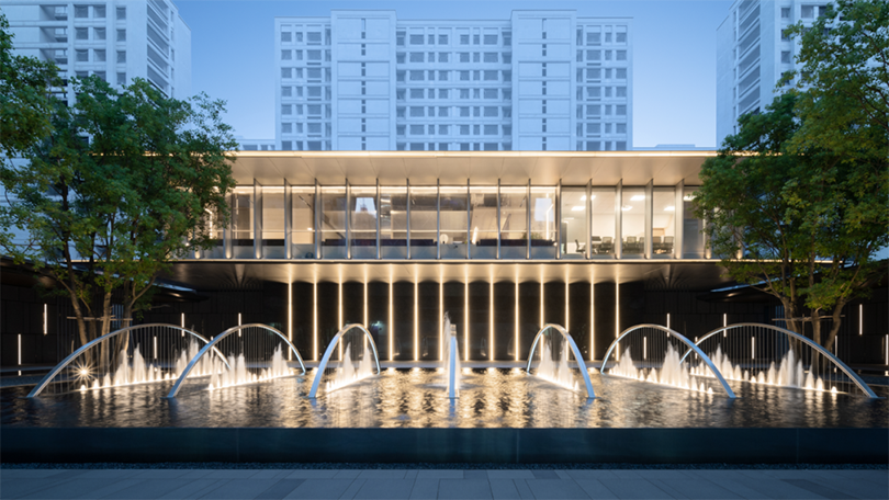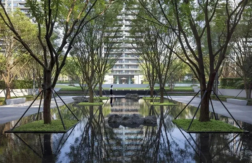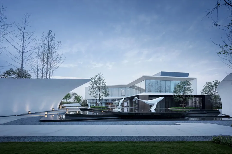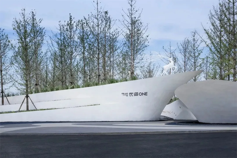 项目位于杭州临平,由南北两个地块组成。两地块主入口建筑同时内退,形成了内部聚合性的城市开放空间。景观设计充分体现项目特色,通过南北一体化设计,形成整体化的形象界面,通过大型艺术装置的安排,打造当代艺术的景观客厅。
