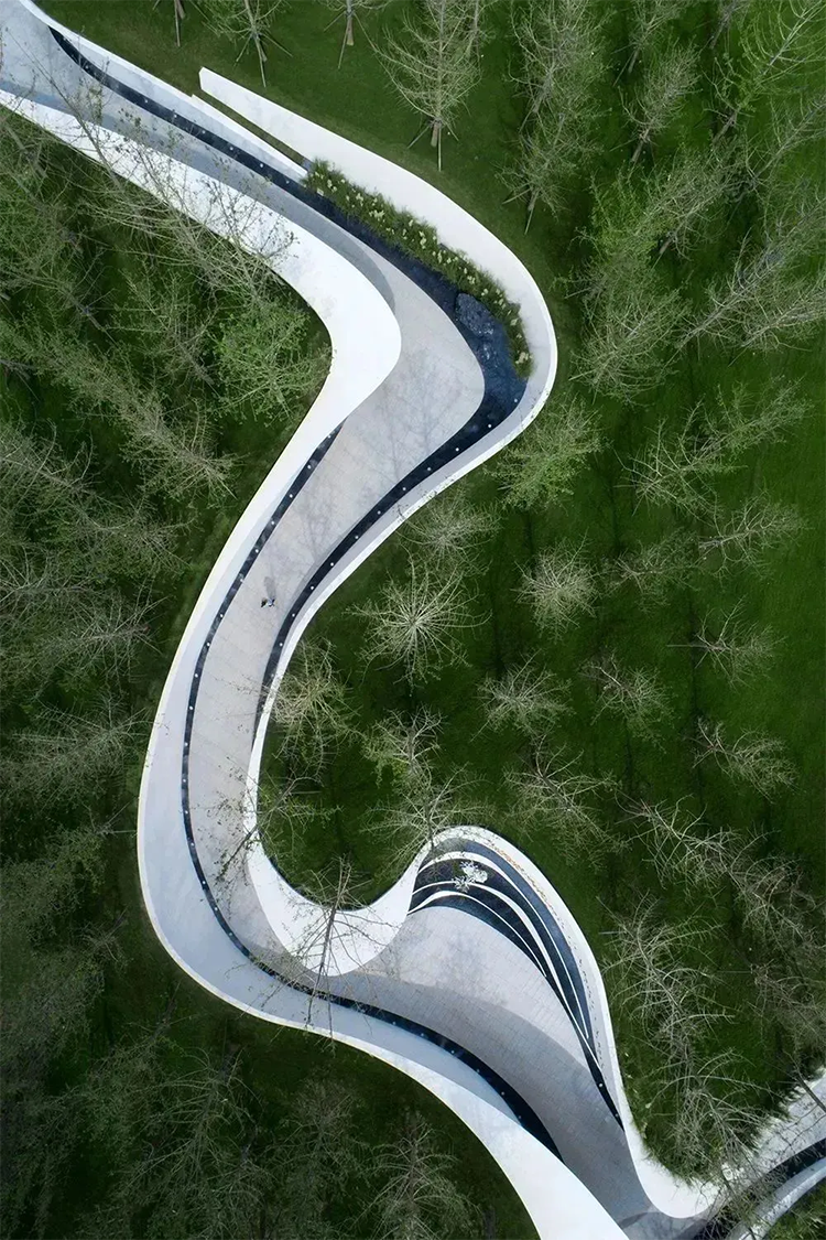 项目坐落于湖畔之上,周边环抱缓坡、绿地与森林,然而场地现状格局狭长且窄小,成为设计需要思考并解决的问题。设计师经过深入挖掘场地特征并反复探讨推演,运用流畅曲线扭转空间劣势为优势,结合纯白墙体演绎不同转折空间下的丰富感官体验,一场引入峡谷隧道深处的漫舞之旅由此开启。