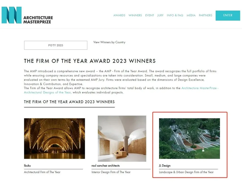 据悉,全球范围内,建筑、景观、室内各专业有且仅有一家公司获此殊荣,其获奖页面展示在官网该类别首页。年度公司奖是基于职业生涯中的整体成就,表彰全球范围内富有灵感和创新精神的建筑、室内、景观设计公司的卓越表现,评审从公司历史、成就、获奖情况、专业能力、优秀项目等多维度进行综合评估。