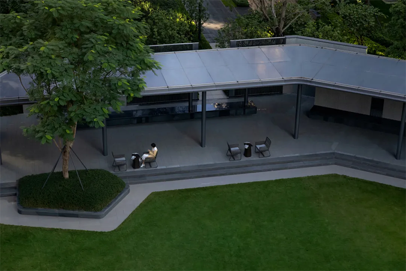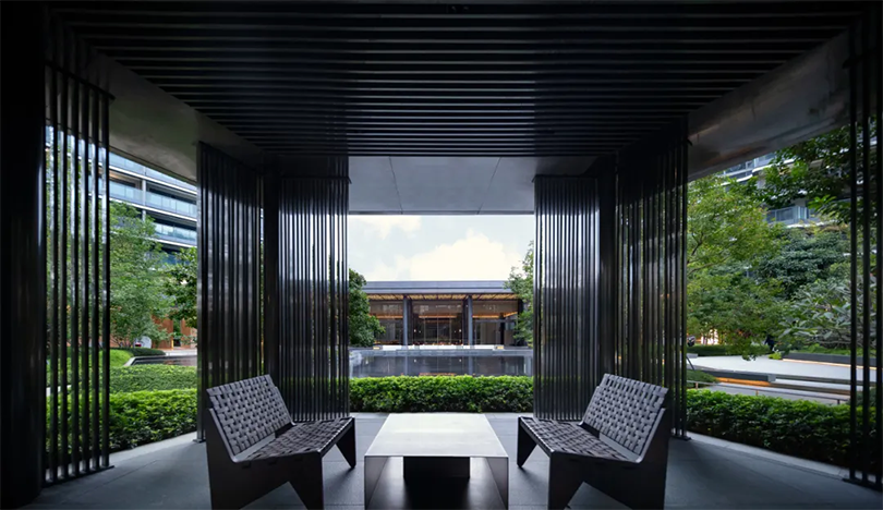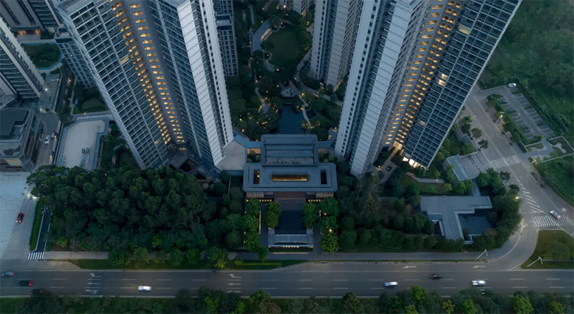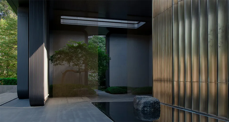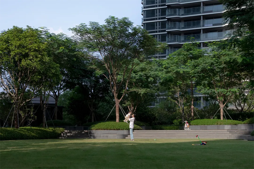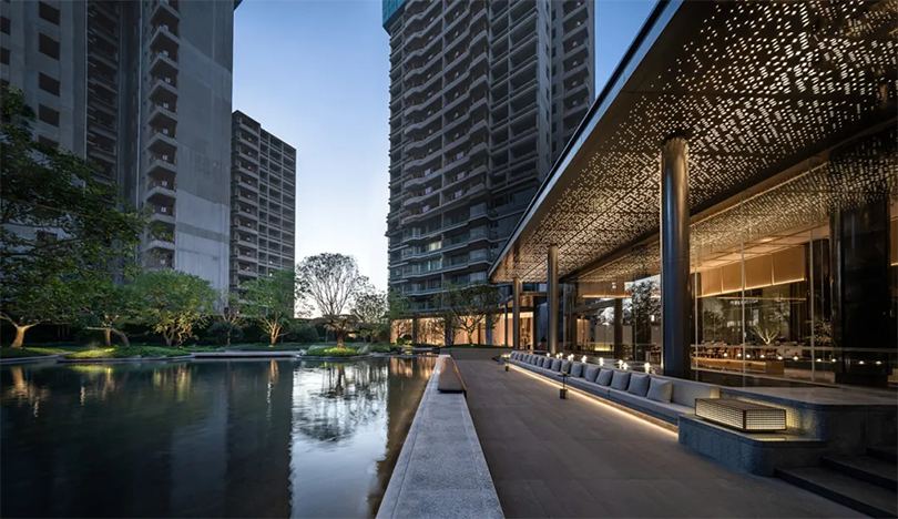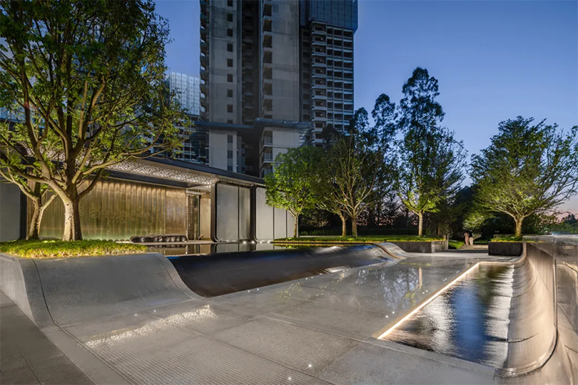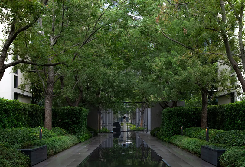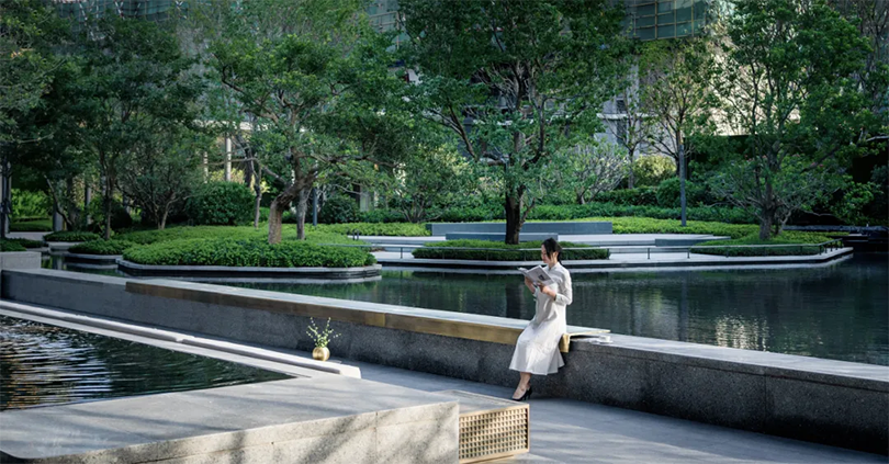 在闹市中觅安宁,于清幽处探禅意。当心静下来了,就更容易去遵循本心,悟禅意,悟人生真谛。“曲径通幽处,禅房花木深”,相较于开阔的高层轴线,这条狭长的洋房景观中轴线,就如这句诗一样,曲径通幽,饱含含蓄内敛的东方雅韵,展现出一幅清溪流水伴幽林的画面。
