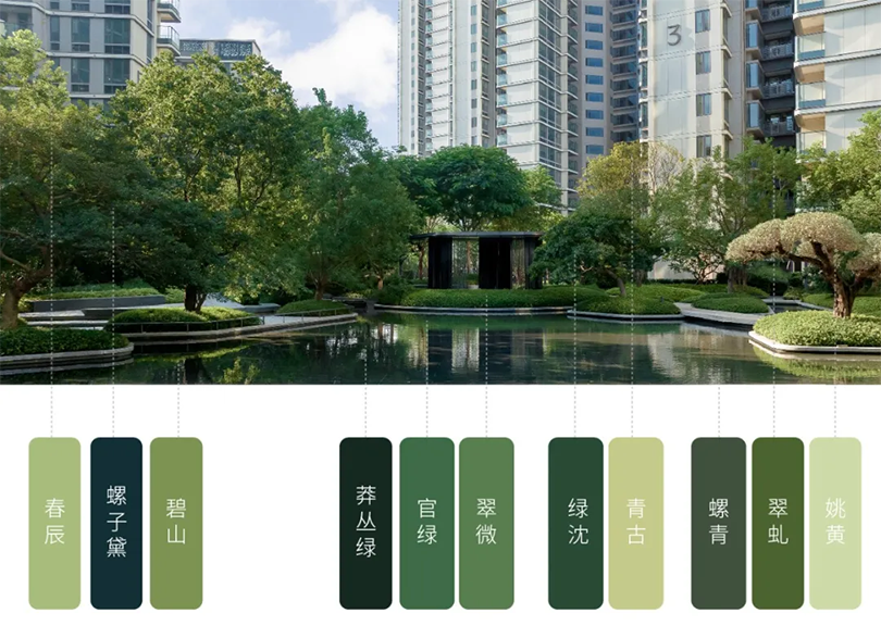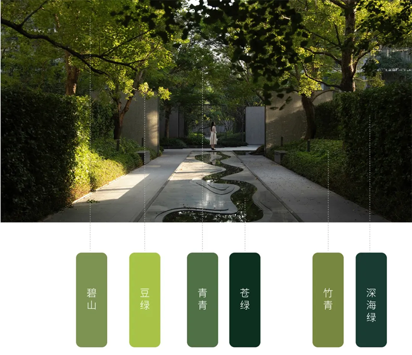 这一刻,当光线绕到了场地后面,呈现的又是碧山、豆绿、苍绿、深海绿、竹青等色,让这一隅之地显得是那么的清幽动人。