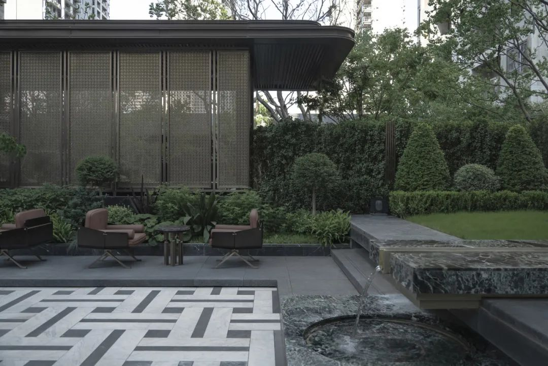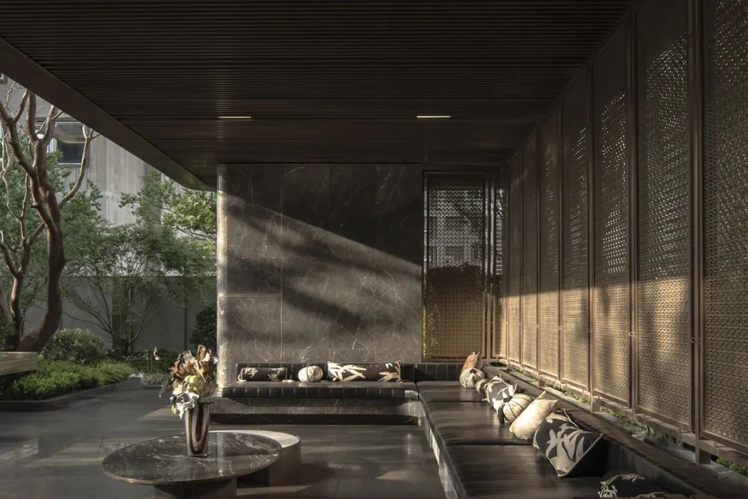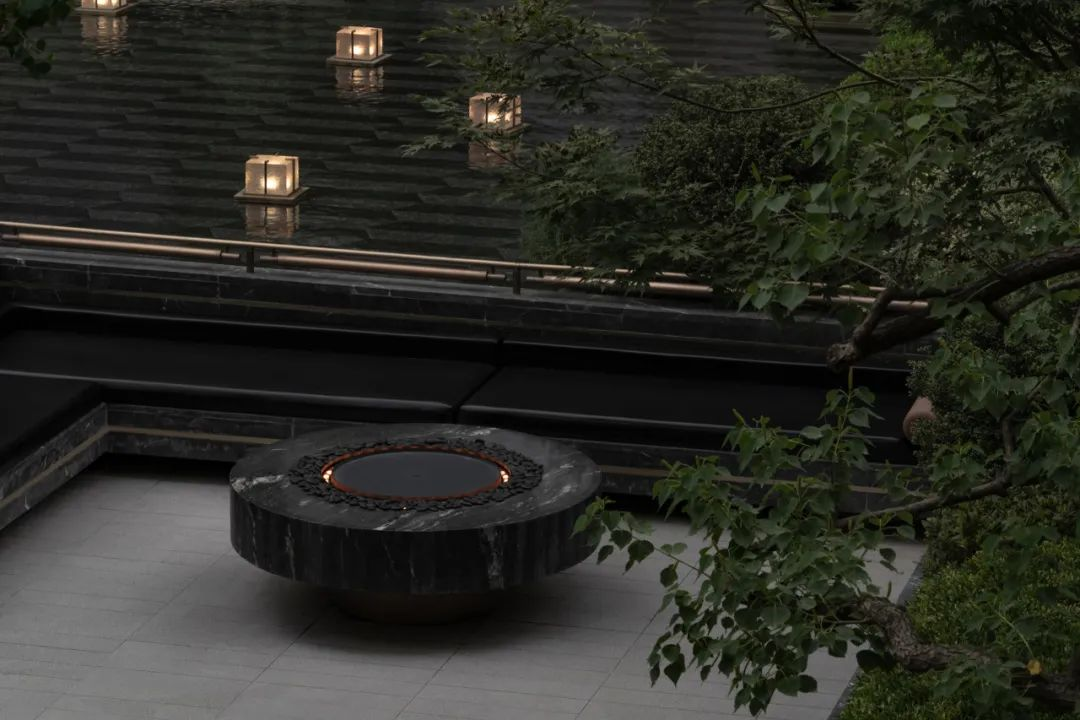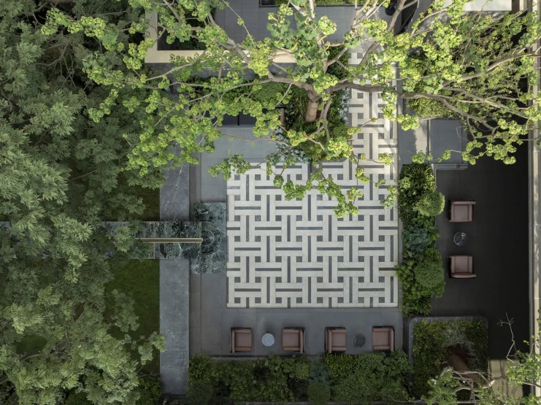 后场庭院就像西安城的大街小巷一样方正对称,或许是为了能够更快的融入西安人的生活方式。中国传统色缁色的精致的软装,为整个庭院又增添了一抹古韵。上下两层休憩场地,一个是屋檐下的诗意,一个是绿意深处的芬芳。