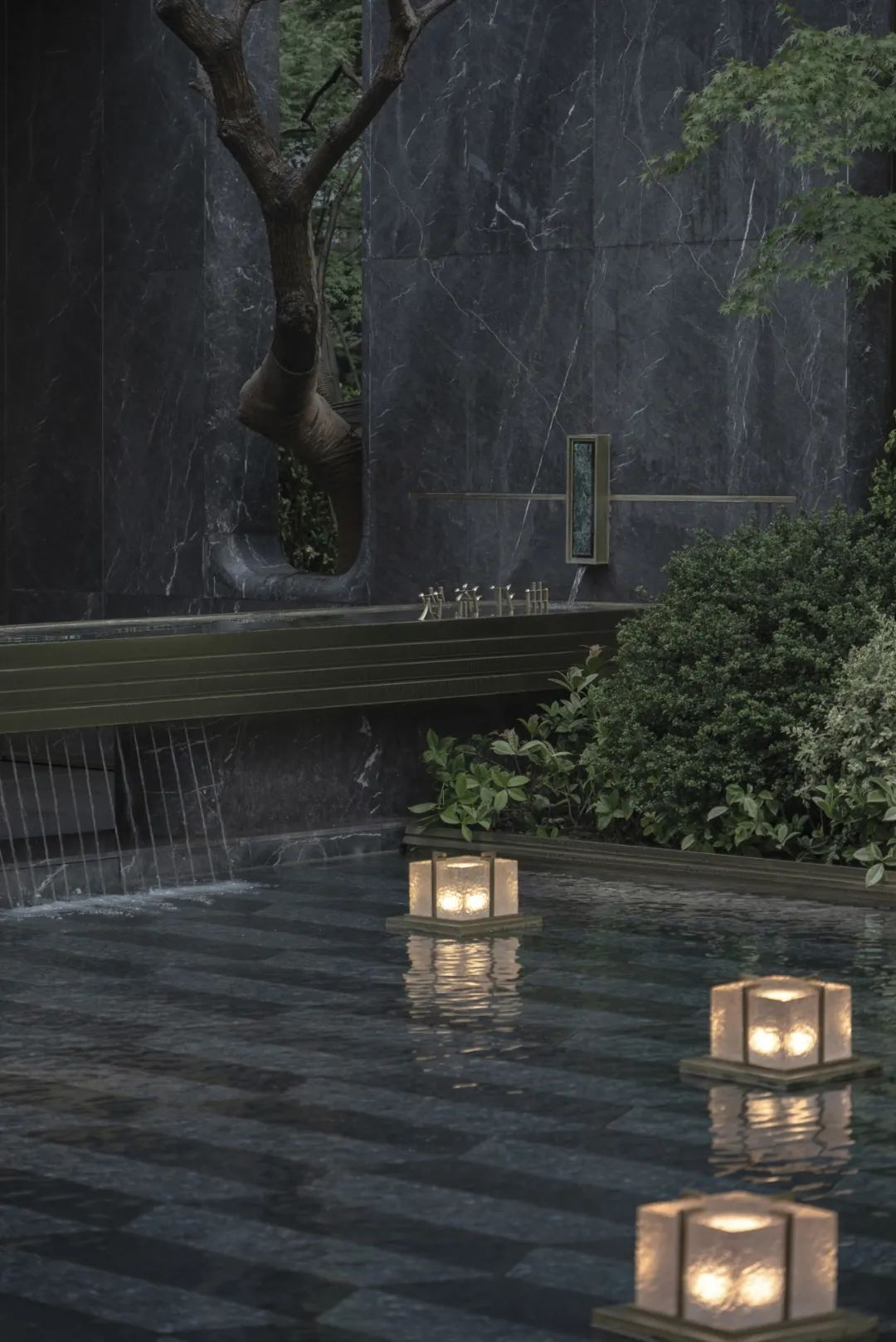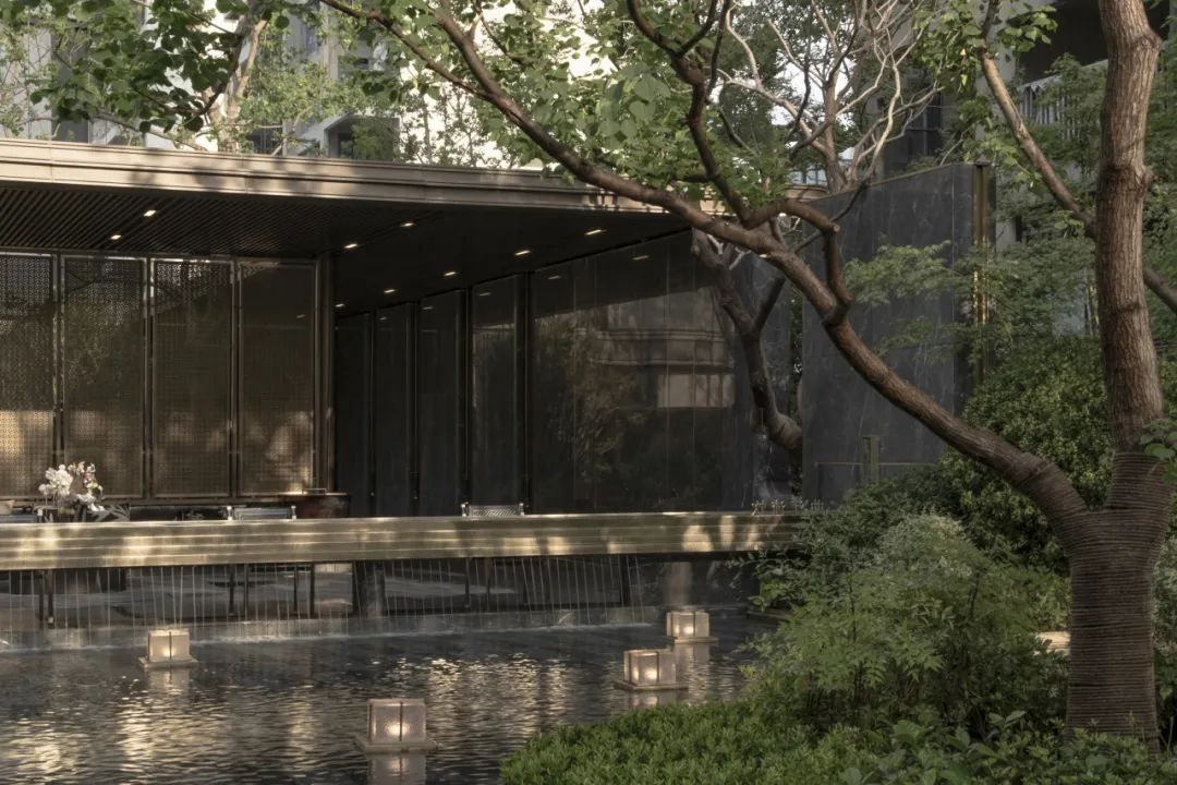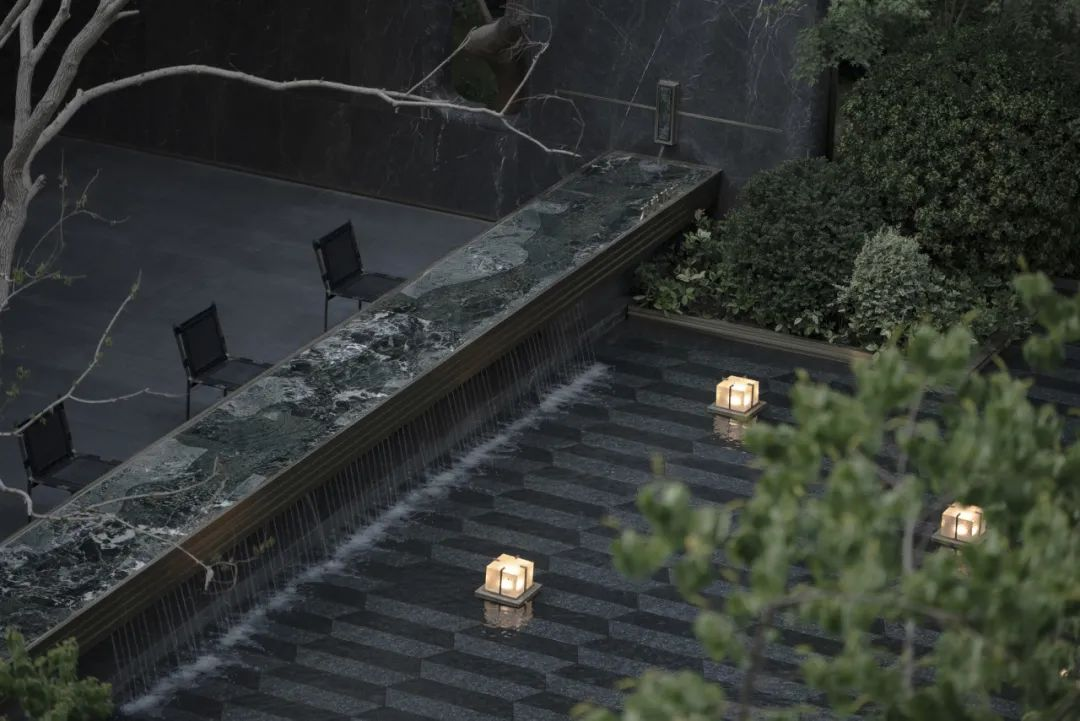 庭院内大片层叠的水景也让人分外清凉。乌桕果实初熟,栀子花开得正艳,信步游走或静坐水边,都是我希望在这里的体验方式。看华灯初上,听蝉鸣鸟叫,任凭时光流转,这就是值得虚度的夏日呀!
