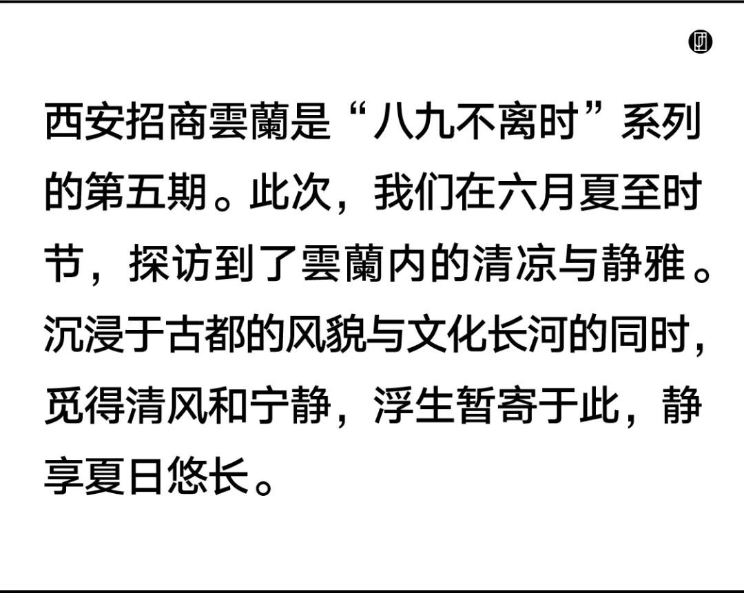 刚过夏至,西安城万物繁茂,骄阳似火。此时踏入云兰却是清凉瞬至,心旷神怡。阳光透过稀疏的云层,洒下斑驳陆离的光影,涓涓细流与清风共舞,此间景致,正是浮生半日闲的悠然之所。
