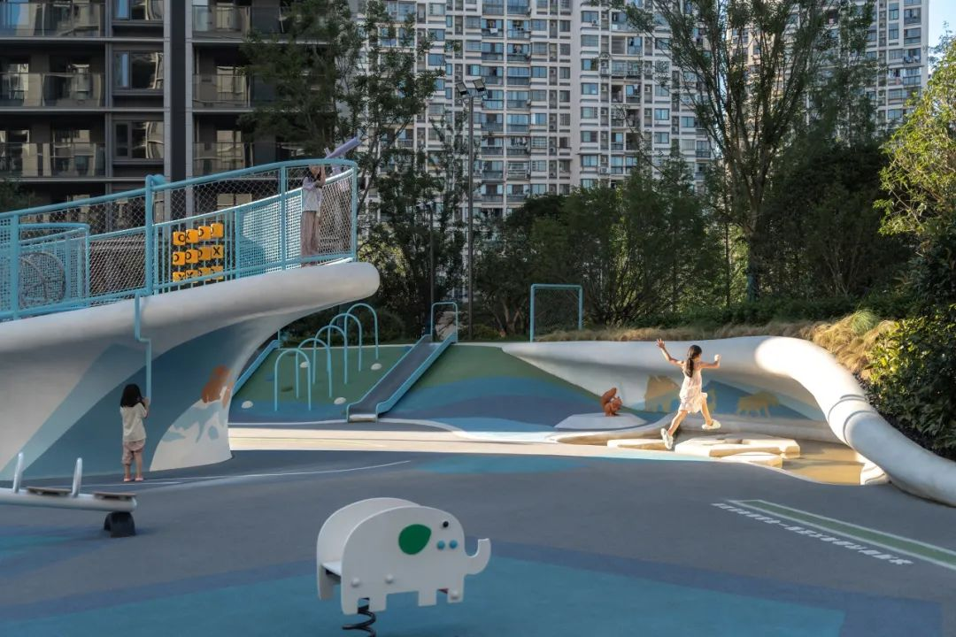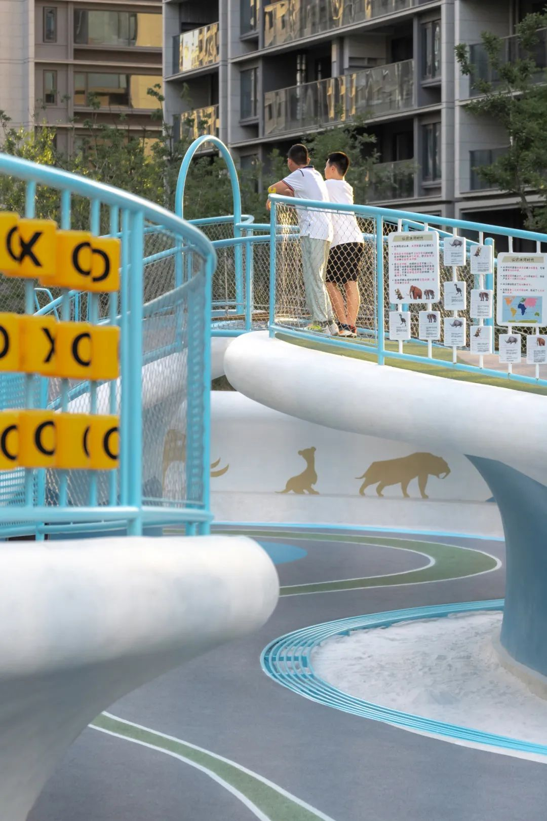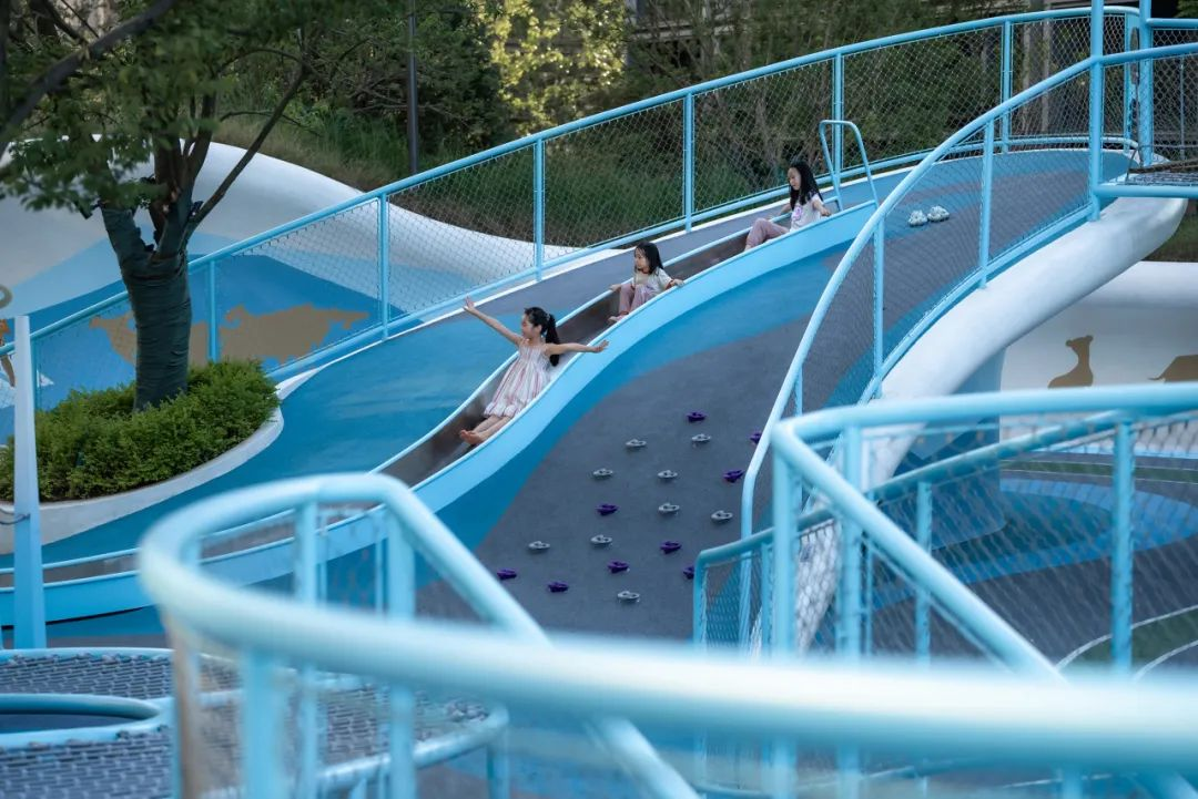 悬挑结构与高差变化构筑的冰川大冒险区域,集玩耍与探索功能于一体,配以童趣色彩的壁画,孩子们仿佛穿梭于童话世界。