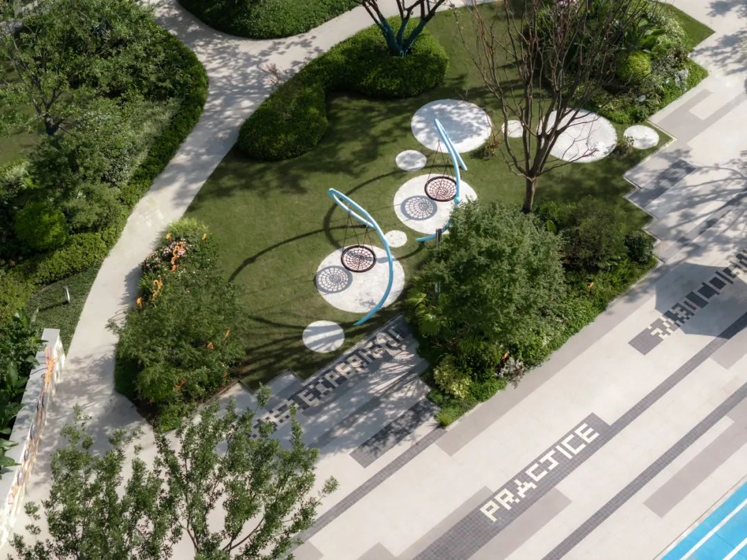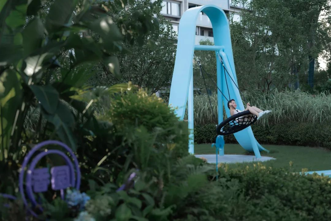 转而来到春知学堂区域,自然认知在此开始。在绿意丛生植物花园里探秘蝴蝶的蜕变;用指尖去轻抚植物的叶片,感受不同的质感;用呼吸去分辨出芍药和薄荷的方位;待丰收的季节,再用舌尖去品尝来自果园的甜蜜。此情此景,一定就像这高高荡起的秋千一样纯粹快乐。
