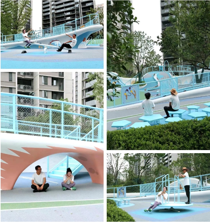 欢愉未尽的同时,我的思绪不禁飘回了项目竣工之时看到的照片——甲方团队在场地内的创意摆拍。那是对场地精雕细琢后的欣喜,亦是对大区生活的预演。