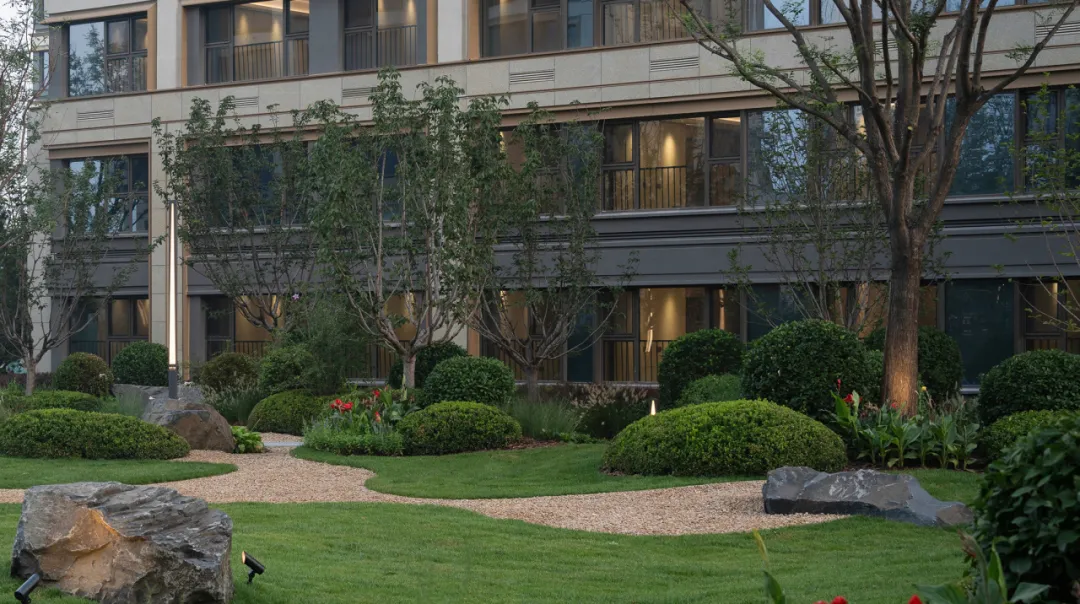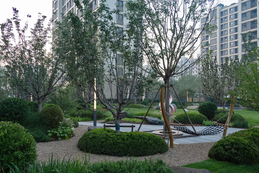 北京桂语听澜定位为儿童友好社区,旨在通过植物景观营造充满活力与探索感的成长空间。