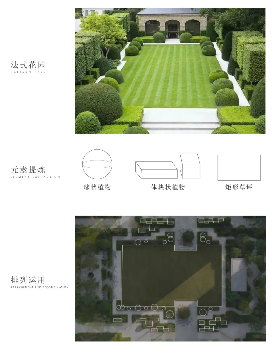 以法式花园为灵感,通过矩阵式精工修剪的秩序优雅与自然生长的草花结合,演绎浪漫朦胧的气质诗篇。