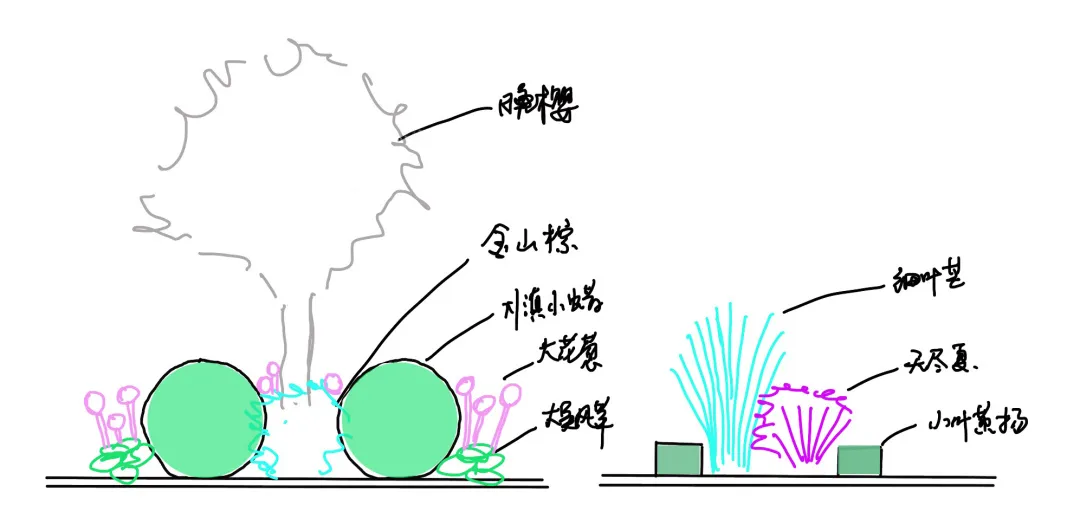 2、场景叙事:通过植物配置传递空间的主题与情感,如活力、浪漫、静谧等;