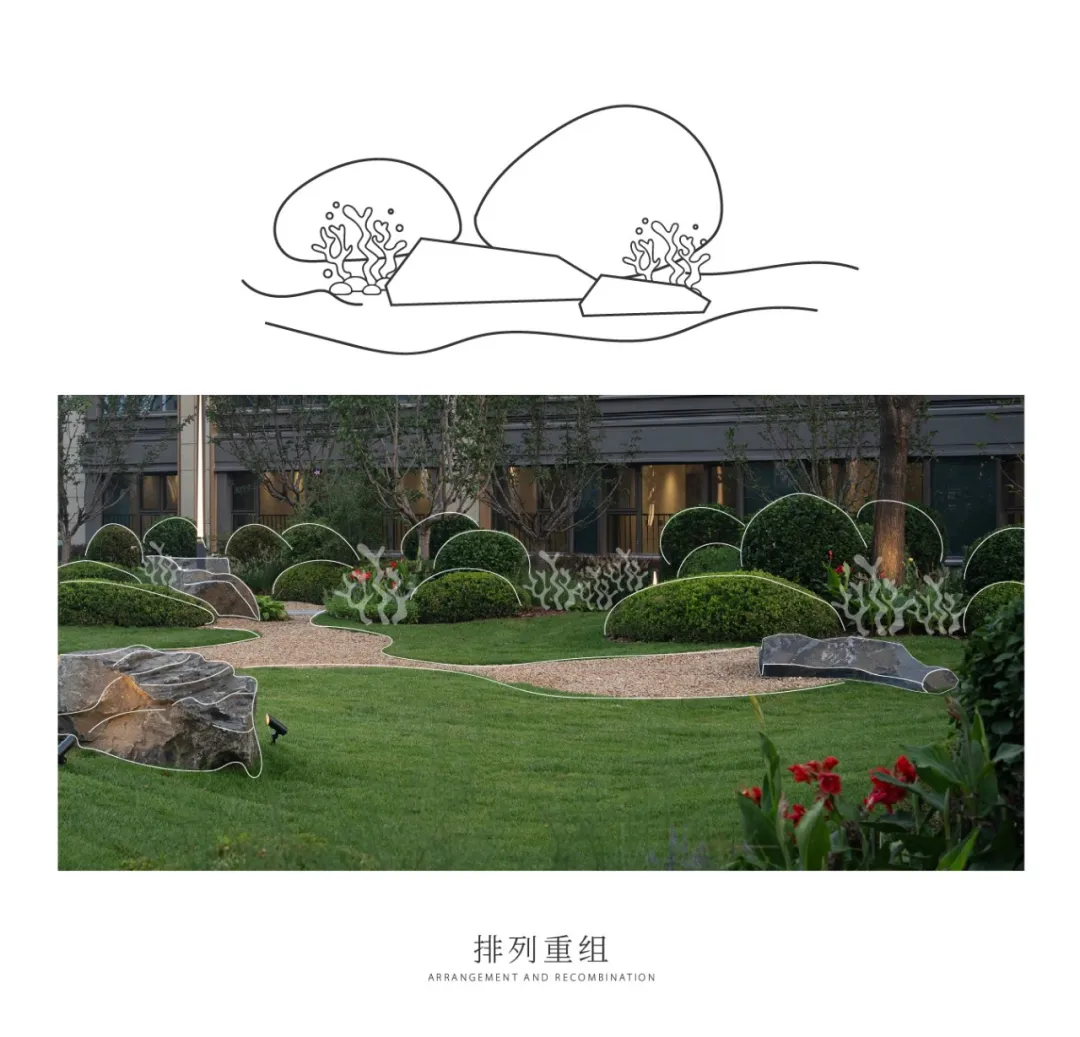 因此,佳联设计从植物场景出发,以自然生态为基底,融入精细工艺,在秩序与野性之间寻求平衡,打造既具生命力又富有秩序美感的自然主义精工景观。
