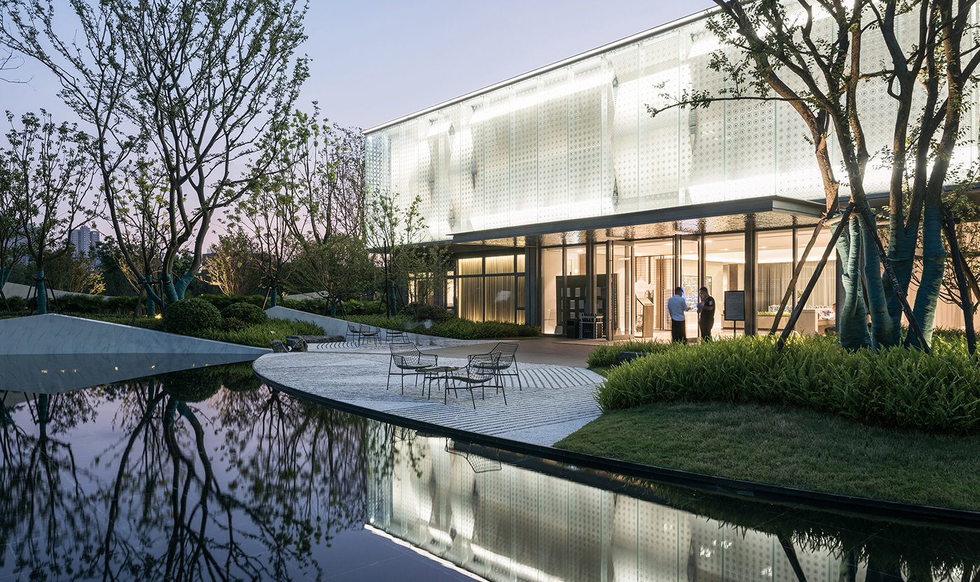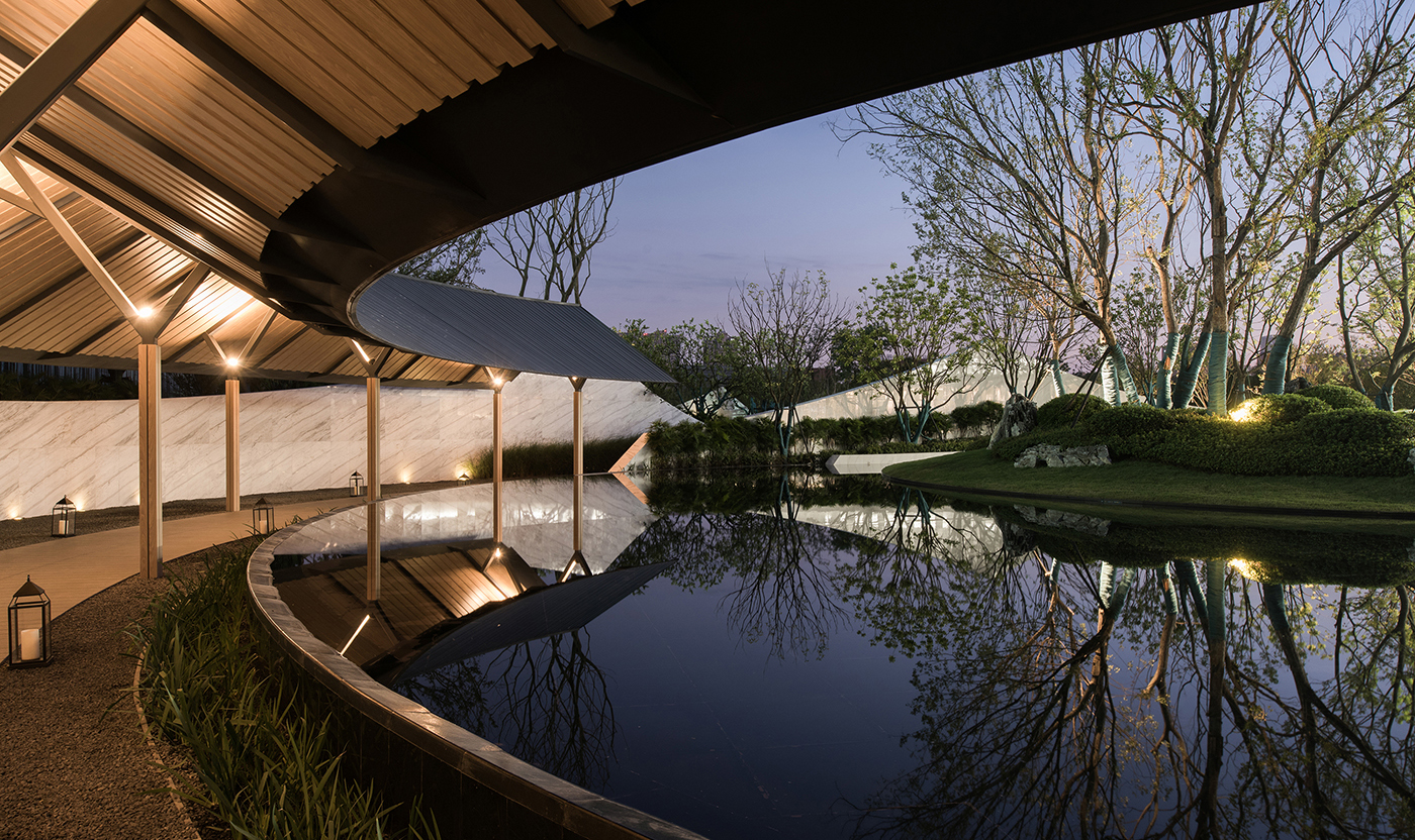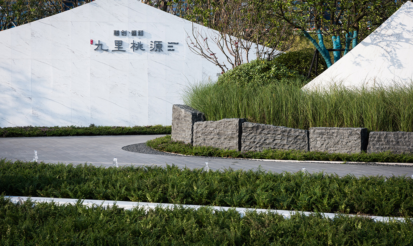 融创南通九里桃源位于南通市港闸区永兴大道,占地5000平方米。项目外侧有湿地公园环抱,内侧有中式古典别墅相依,如何交融场地东方意境的人文特征,组织起一次不落俗套的游走行吟是本次项目的挑战点。