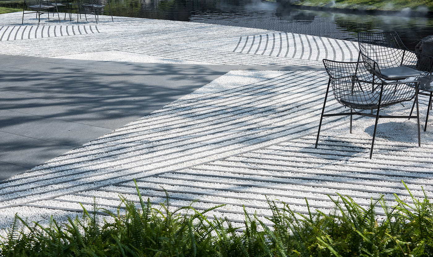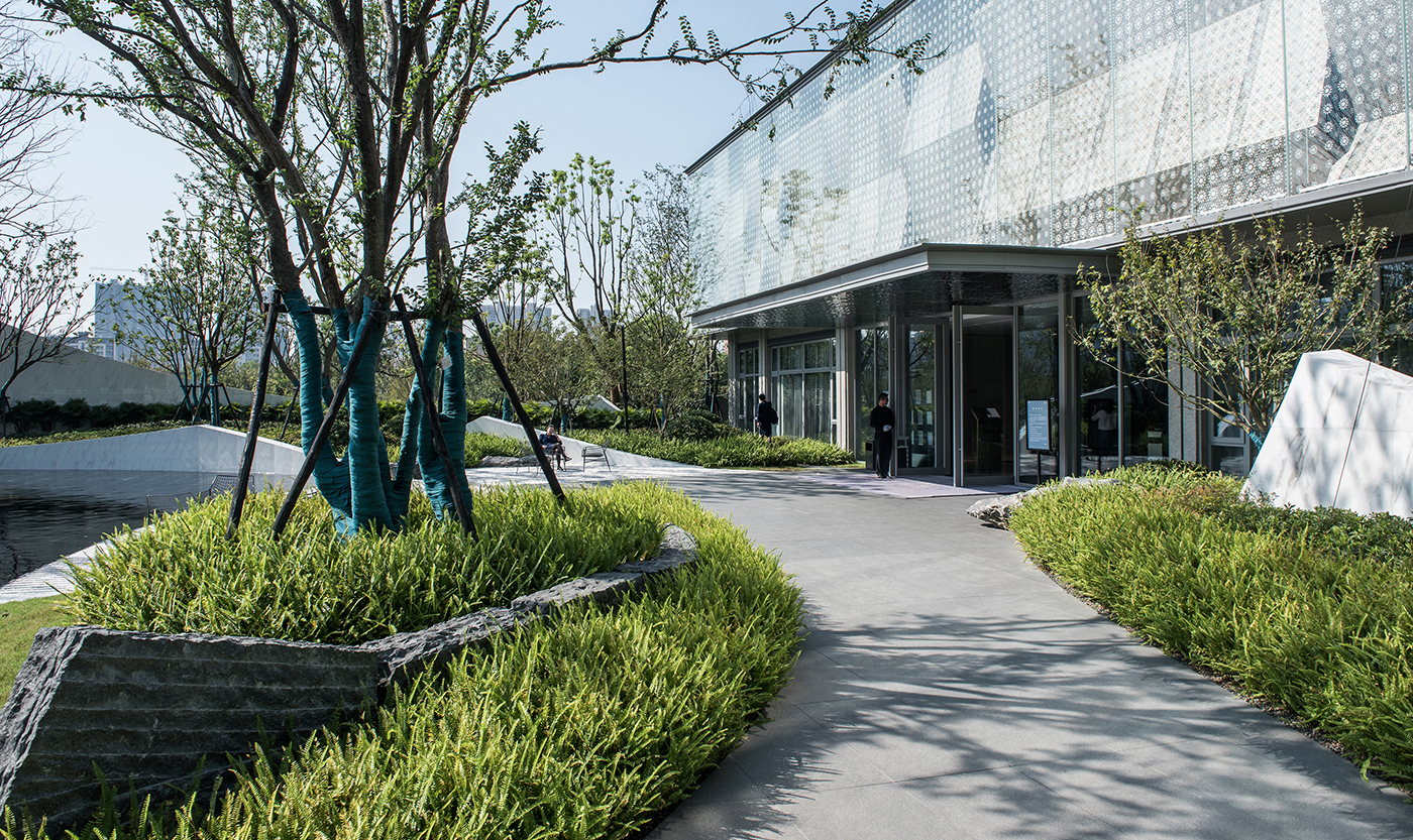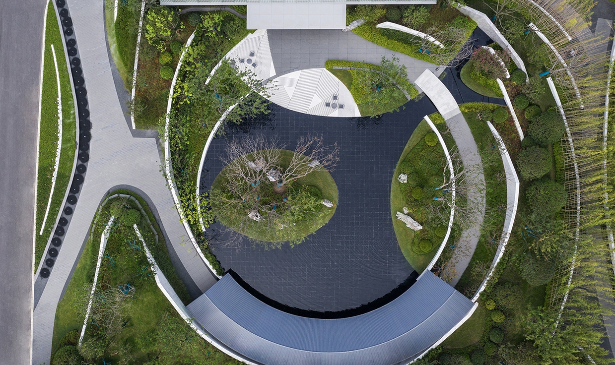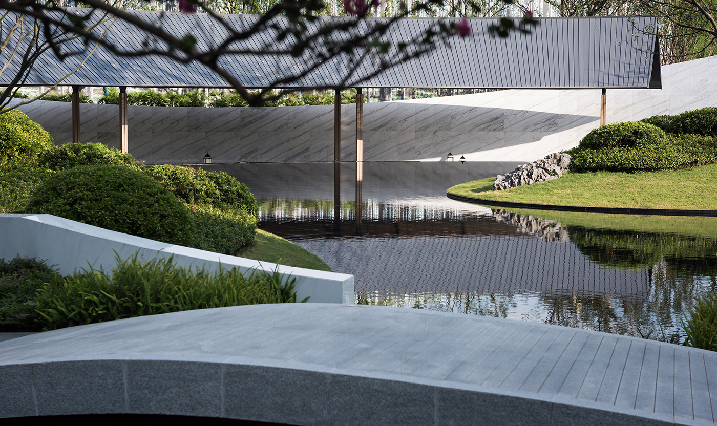 融创南通九里桃源位于南通市港闸区永兴大道,占地5000平方米。项目外侧有湿地公园环抱,内侧有中式古典别墅相依,如何交融场地东方意境的人文特征,组织起一次不落俗套的游走行吟是本次项目的挑战点。