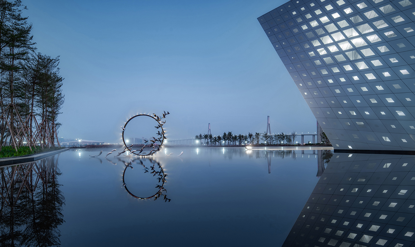 从张扬的建筑形态中彰显气魄,从有趣的自然形态中汲取灵感,,本案概念设计借南海之壮阔,以海为底,以浪为形,以舟为体,结合招商敢为天下先的精神展现扬帆起航的气势和海纳百川气魄。设计师注重场地精神,从当地的建造与材料到社区的融入,将地域性元素将贯穿整个项目设计始终,并通过借景、对景以及步移景异等设计手法,展现场地的波澜壮阔和雍容华贵。